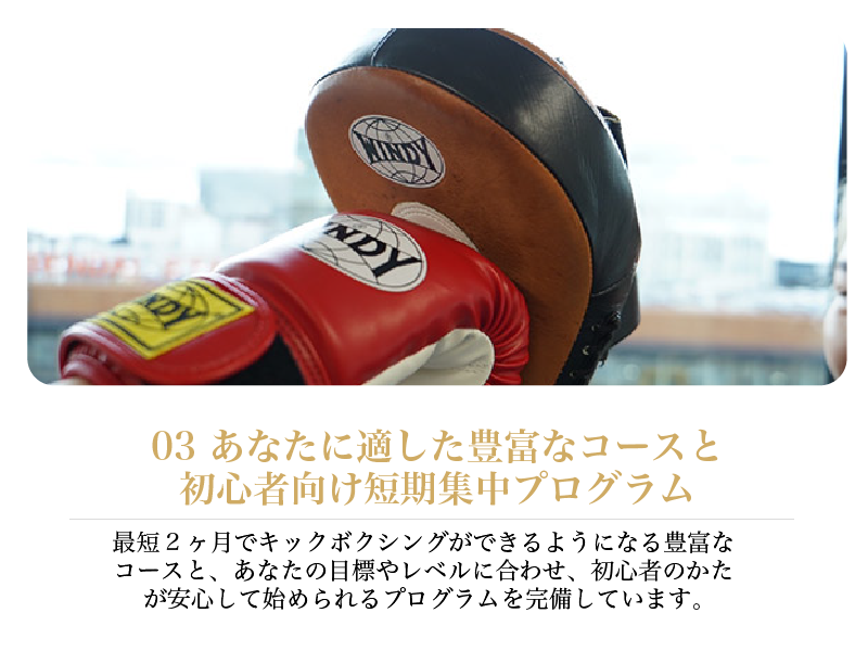 はい、ご入会いただけます。 キックボクシングを覚えたい・楽しみたいなど、お客様ご自身の目的に合わせてご案内させていただきます。