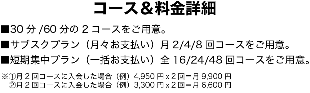 HERMINEは通いやすいチケット制となっております。目的に合わせて期間・回数を選択できます。